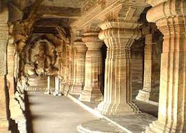 Cave 1 : The first cave made of red sandstone, dates back to 578 A.D. and was probably the first to be carved. One has to climb up 40 odd steps to reach the colonnaded verandah, a hall with numerous pillars and a square shaped sanctum hollowed in the control back wall.